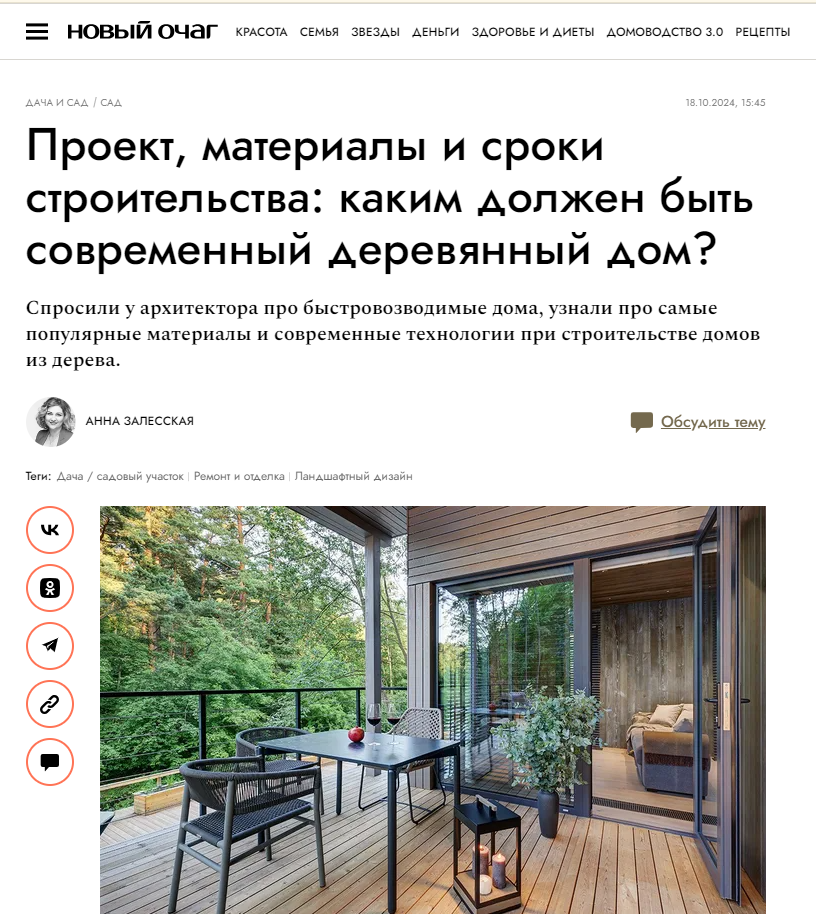 Опубликовано новое интервью архитектора АРХИWOOD для журнала "Новый Очаг".